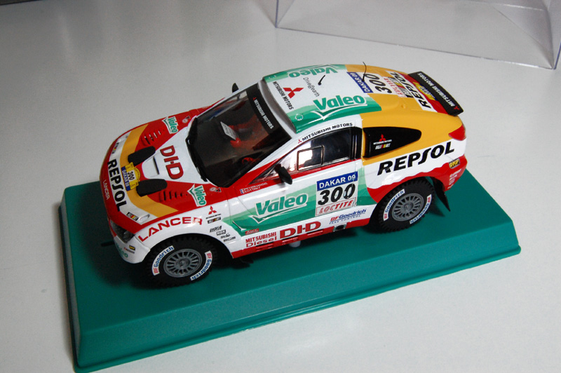 Hace un par de días adquirí en el Mercadillo de Slot de Chamartín unos de los Mitsubishi Lancer Raid a un precio muy asequible. He de confersar que se trataba de un modelo que me hizo "tilín" desde que salió, pero no estaba dispuesto a pagar "cincuentaimuchos" o "sesentaipocos" euros por el juguete. En cambio, por el coche de colección mejor espero a que baje de precio. Que bajará. Que al fin y al cabo es un ajuste de mercado, y eso siempre se produce. Dicho y hecho, tal como predijo el profeta sucedió.